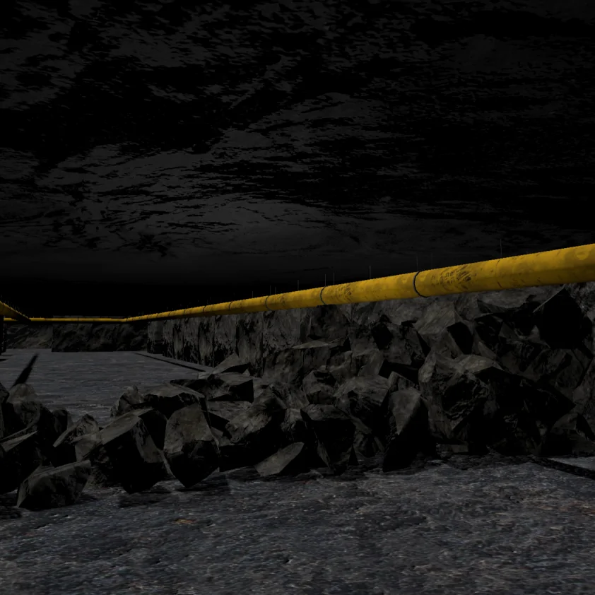 Тренажер моделирует обстановку подземной выработки и включает в себя: